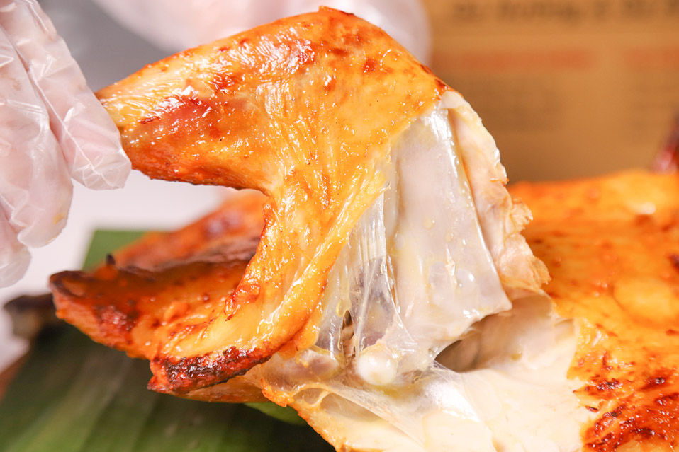 Sử dụng thịt gà tươi ngon, tẩm ướp gia vị muối ớt đậm đà, mang đến hương vị cay nồng kích thích vị giác. Được nướng bằng bộ bếp đặc trưng của FLYFOOD, tạo nên lớp da vàng giòn, bên trong thịt mềm ẩm, ngọt tự nhiên.