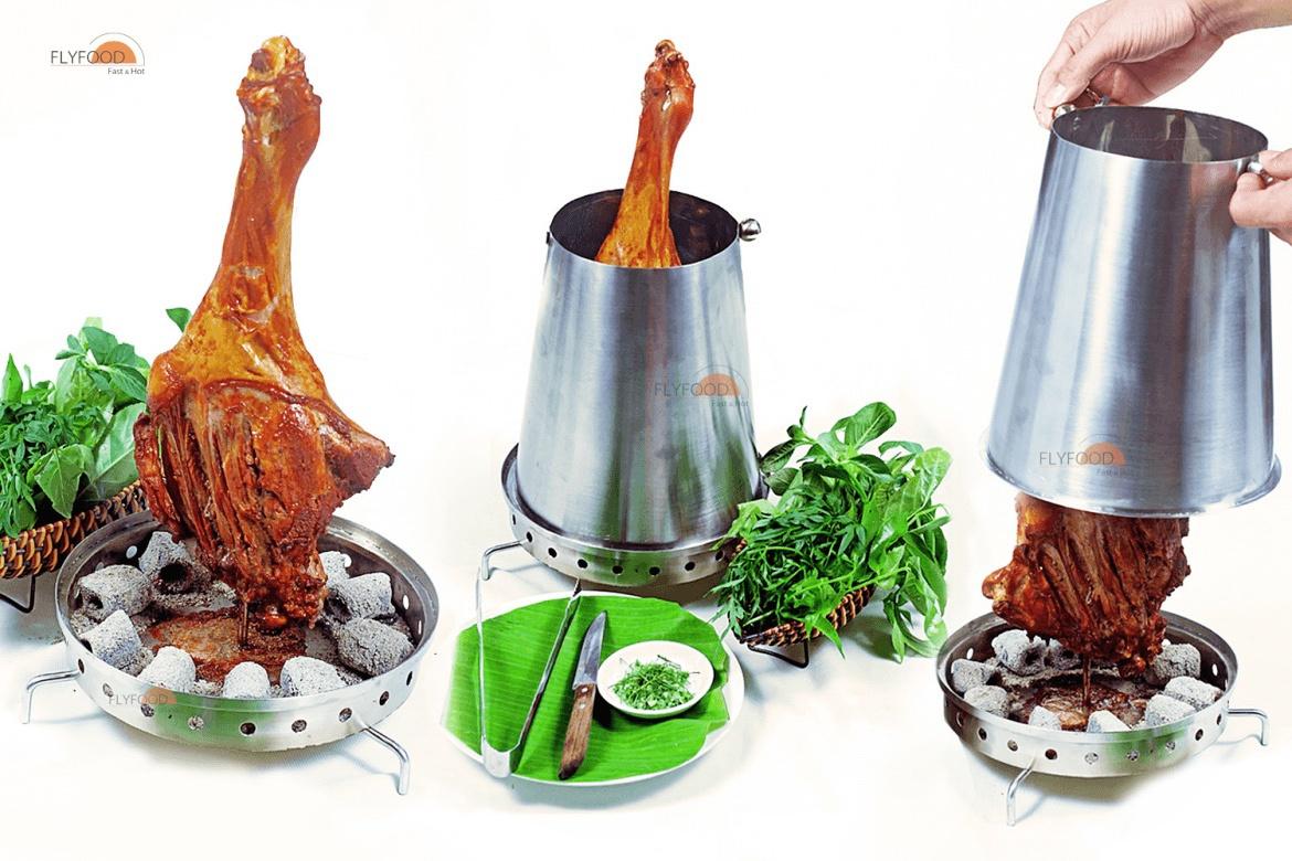 Thịt đùi dê tươi ngon, bó cơ săn chắc, ít mỡ, ngọt và nhiều nước. Món đùi dê đút lò đi kèm Lò nướng Flysun360 làm nóng và tạo phong cách ẩm thực độc đáo, giá trị, tại bàn.