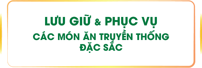 Lưu giữ, Quảng bá Ẩm Thực Truyền Thống từ các vùng miền Việt Nam và sáng tạo thêm để phù hợp với đương đại, khẳng định giá trị văn hóa ẩm thực và vượt qua các thương hiệu ẩm thực nước ngoài đang du nhập vào Việt Nam.