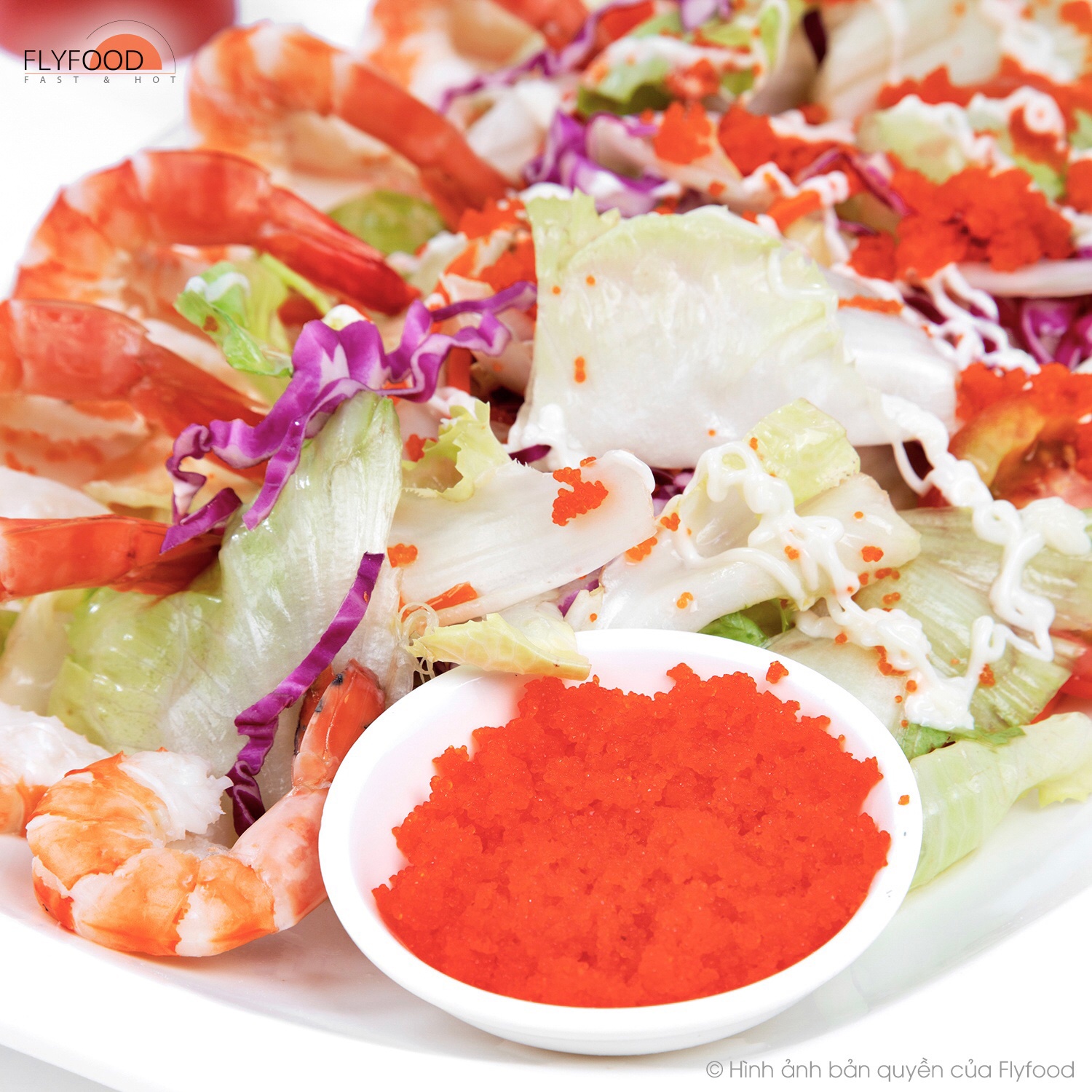 Món Salad Tôm thanh đạm và đầy màu sắc, không chỉ ngon miệng mà còn rất bổ dưỡng. Khi thưởng thức, món Salad Tôm tưởng như quen thuộc lại khá lạ với cái vị thanh dịu của rau xà lách, bắp cải tím, cà chua và tôm thịt lẫn trong cái béo béo của sốt Mayonnaise sần sật của trứng cá muối. Hương dầu mè thơm phức cũng khiến cho món salad tôm thêm phần kích thích và hấp dẫn.